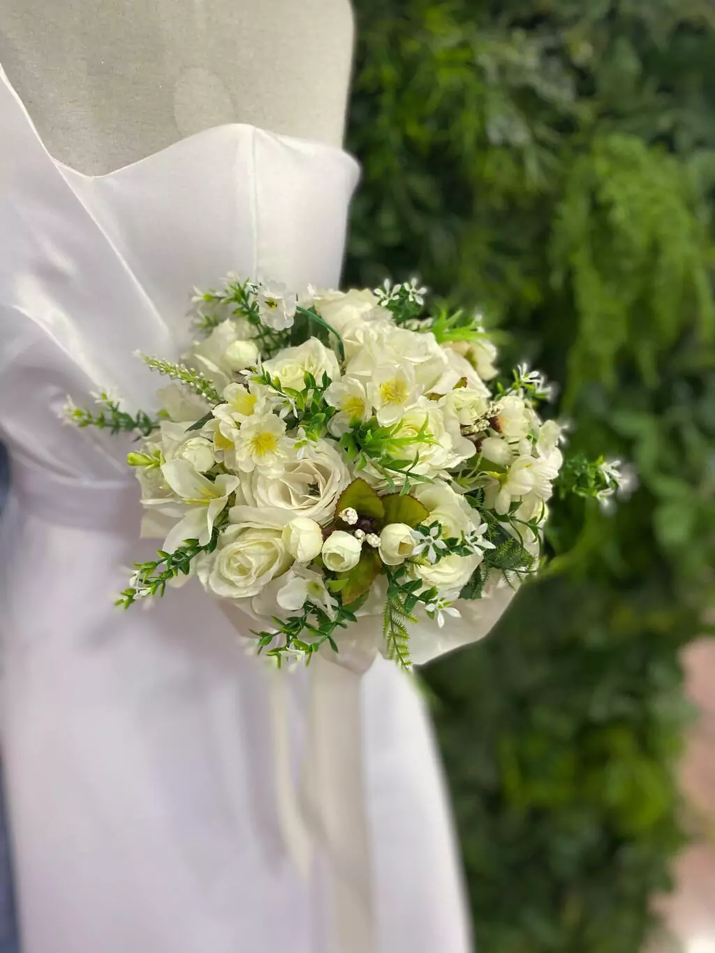 Destaque o charme do seu grande dia com nosso buquê delicado com flores artificiais. Este buquê é cuidadosamente confeccionado para oferecer uma aparência realista e elegante, ideal para noivas que buscam um toque de sofisticação sem abrir mão da praticidade.