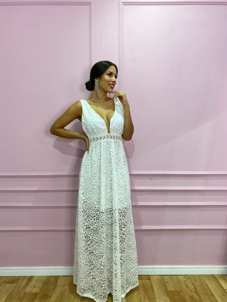Vestido longo com rendas de flores para casamentos