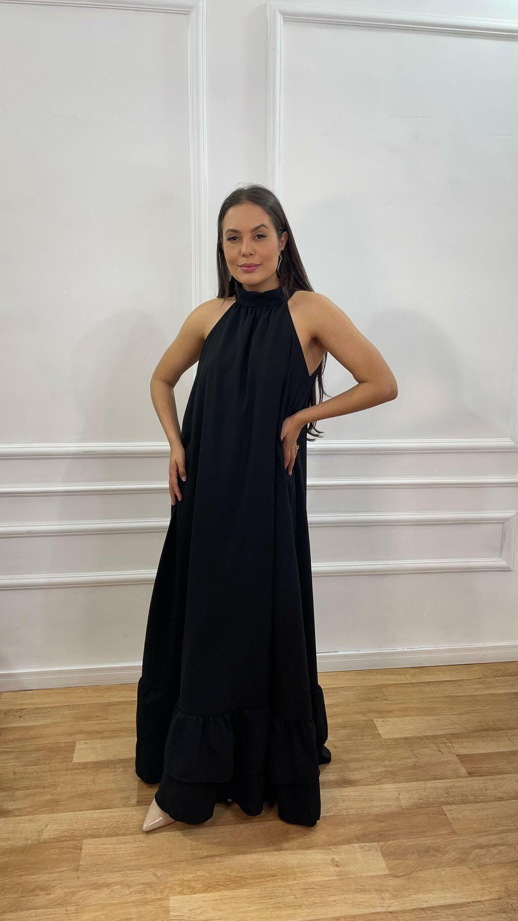 Está em busca do vestido perfeito para arrasar? Apresentamos o Vestido Longo Preto Ipanema! Ele é tão versátil que vai te fazer sentir como uma verdadeira deusa em qualquer ocasião!