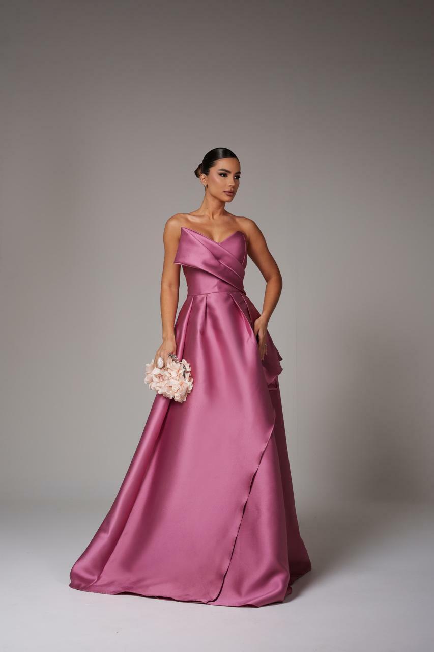 Envolva-se na elegância e sofisticação com o nosso vestido longo rosa de cetim, perfeito para ocasiões especiais onde o glamour é indispensável. Com um design tomara que caia, este vestido destaca-se pelos seus detalhes fashionistas que exalam beleza e modernidade.