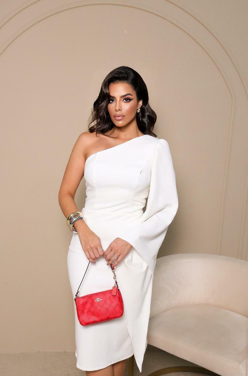 Se você busca por sofisticação e elegância para o seu casamento civil, o Vestido Midi OFF é a escolha ideal. Com um design de um ombro só e drapeado elegante, ele oferece um toque moderno sem abrir mão do conforto.