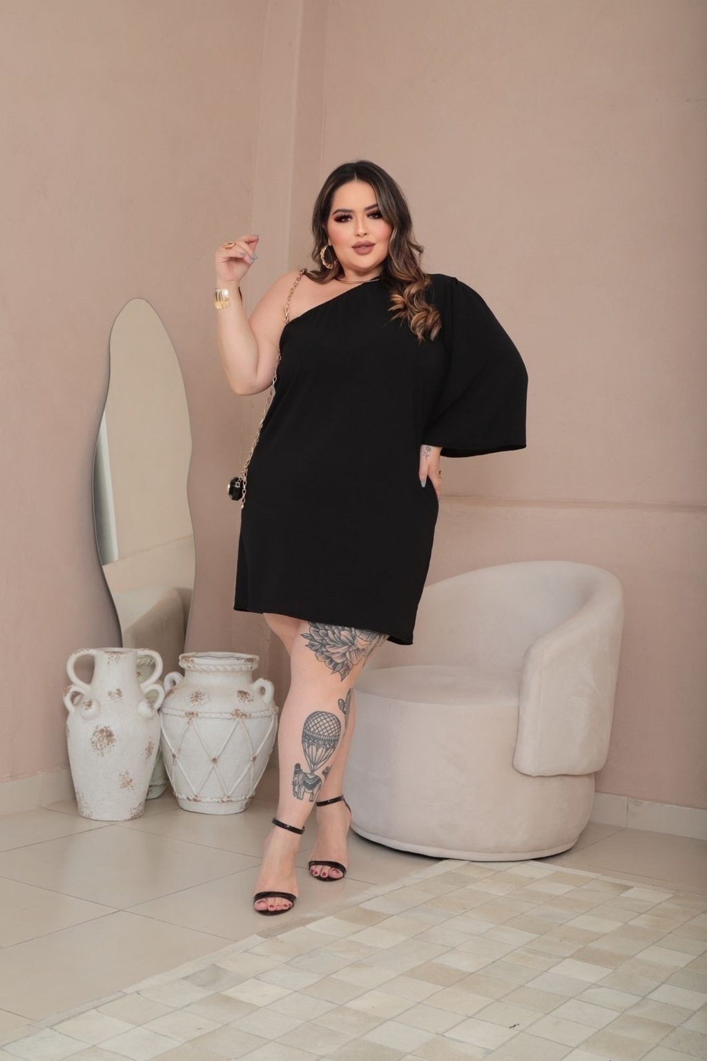 Descubra a elegância e sofisticação com nosso Vestido Midi Preto, Um Ombro Só Elegante Plus Size. Ideal para diversas ocasiões, este vestido é a escolha perfeita para quem busca um visual refinado e moderno.