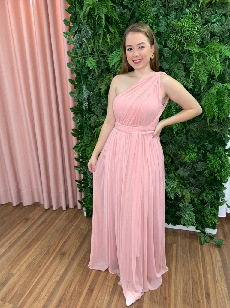 Vestido multiformas, pois pode ser usado de 101 maneiras, ele permite que voce faca varios tipos de amarracoes , que sao super facies e intuitivas de fazer, alem de ser um vestido fluido, leve e confortavel,
